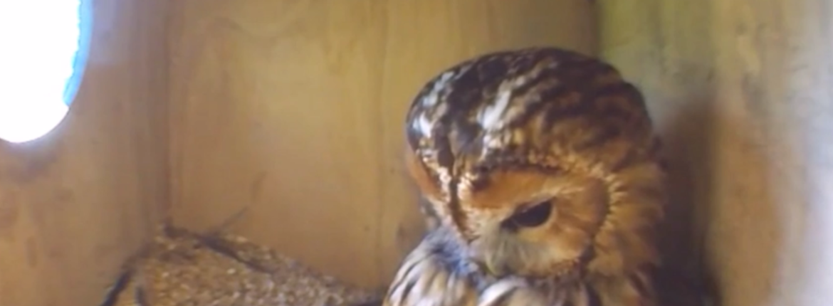 Vanmorgen om 11:09 zagen we V (Vrouw Bosuil) een stukje eischaal eten, het eerste teken dat Kuukeen uit het ei is gekropen. Later om 12:30 konden we eindelijk het kuiken een beetje zien. (zie clip ¨kuiken bij bosuil¨)