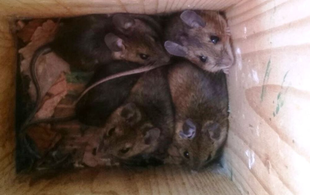 5 lange staarten en 10 kleine kraaloogjes en grote oren. Het bleek een kast vol muizen te zijn!
