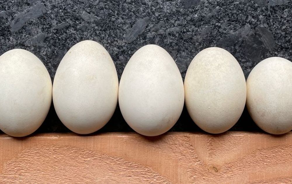 Foto Leo: Oude niet uigekomen eieren op een rijtje