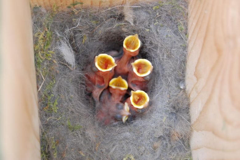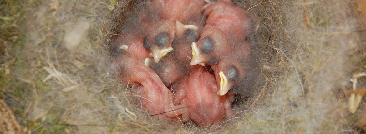 Kaal, blind en nog geen 1.5 gram. Kleine hulpeloze hongerige kuikens. Maar ze hebben niet alleen eten nodig, de eerste 7 dagen hebben ze hun moeder ook hard nodig om warm te blijven. Als je er even bij stilstaat, zijn dat toch behoorlijk wat afwegingen die een onervaren moedervogel moet maken: blijf ik op het nest om de kuikens warm te houden, ga ik op pad om eten voor ze te vinden of ga ik op pad om eten voor mijzelf te vinden? En dit zal allemaal weer afhangen van hoe koud het buiten is, hoeveel rupsen er te vinden zijn en hoe goed vader koolmees zijn best doet.