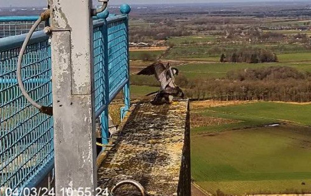 We hebben een paar keer een paring gezien, dat is natuurlijk sowieso nodig om een eicel bevrucht te krijgen. Slechtvalken paren veelvuldig, maar niet altijd voor de camera in ons beeld.