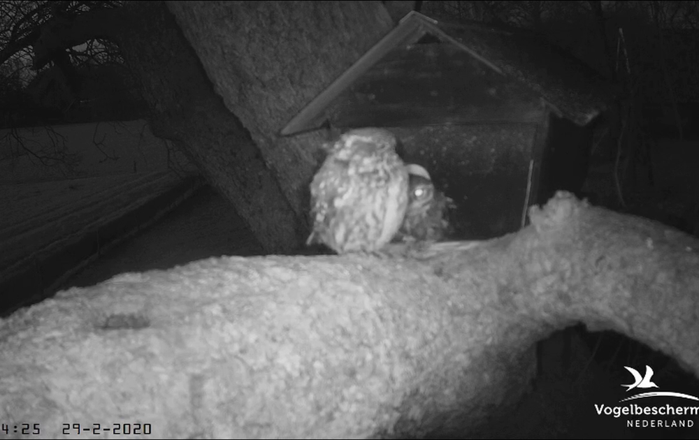 In de avondschemering gaan de steenuilen weer op pad. De buik moet gevuld. Veel romantiek is er de laatste dagen niet te zien en horen. Waarschijnlijk weggewaaid.