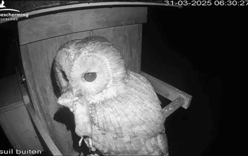 Ook bij de bosuilen komen er 'grappige' situaties, lijkend op vergissingen, voor: Vrouw weg...man komt met een prooi. Wat dan? Het loste zich uiteindelijk vanzelf op.