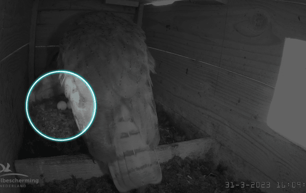 Om 16.04 legde V kerkuil zoals Mark in zijn blog Even een uiltje knappen al voorspelde haar tweede ei.