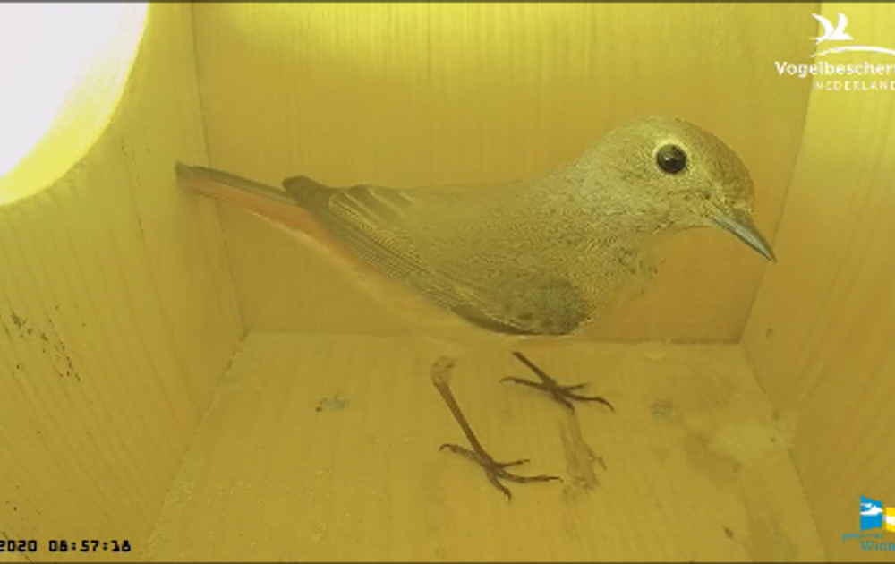 Man verdient een lintje op Koningsdag! Eindelijk is het hem gelukt om Vrouw ín de nestkast te krijgen. Wat een plaatje! Het baltsgedrag is mooi om te zien. Vrouw neemt in ieder geval de tijd om rustig te inspecteren en lijkt het er allemaal gunstig uit te zien voor ons. Duimen!
