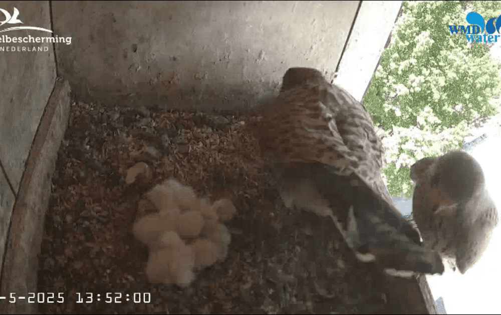 De afgelopen dagen zijn de laatste drie kuikens uit het ei gekomen, dus het gezin torenvalk is nu compleet.