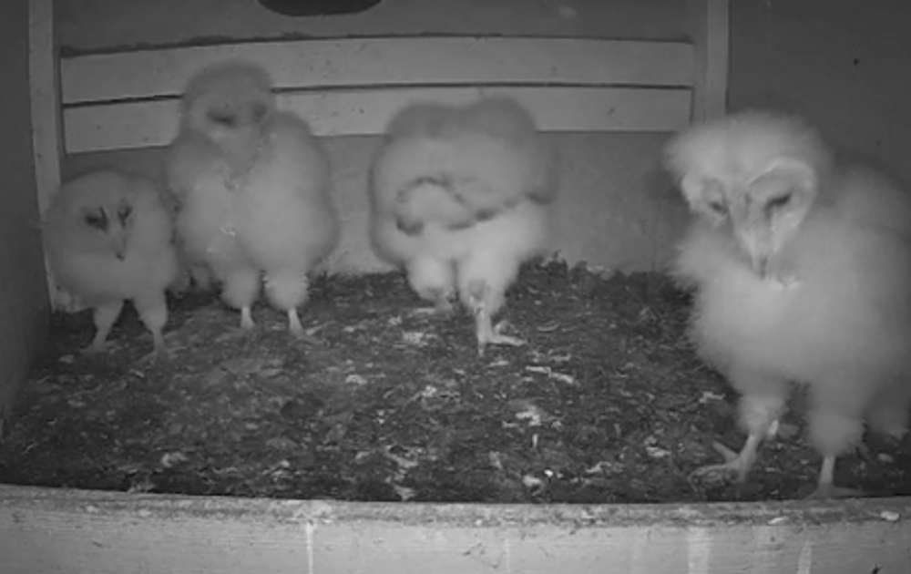De kuikens maken een avondwandelingetje en oefenen in het prooi bespringen en fixeren.