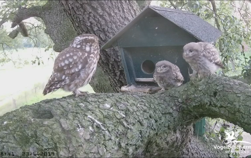 Vrouw steenuil lijkt de jongen aan te sporen wat te gaan ondernemen. Dit gaat op dezelfde manier als vrouw man aanspoorde te vertrekken (om voedsel te zoeken).
