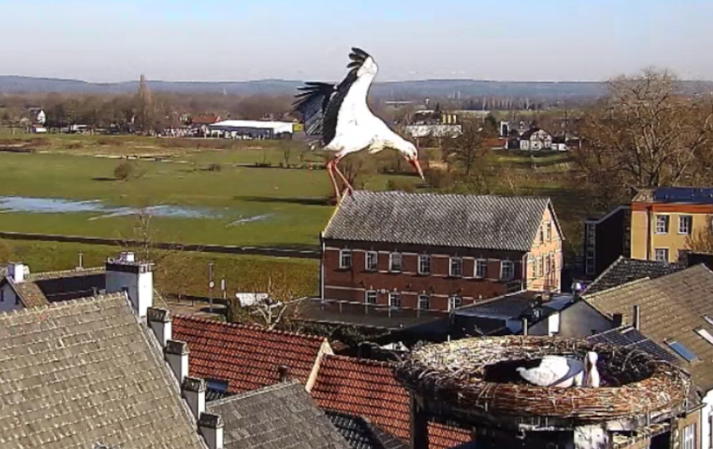 landen de ooievaars tegen de wind in. Opvallend is dat dat vandaag niet