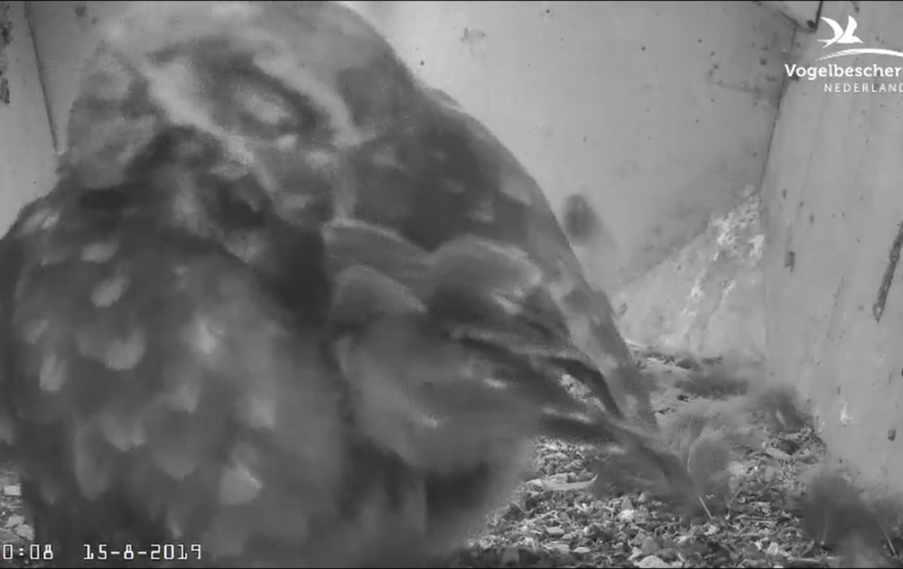 Op 15 augustus was alleen vrouw steenuil in beeld, wel meer dan 10 uur. Een paar scenes.