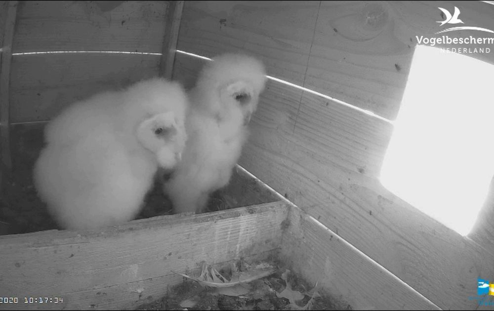 De twee kerkuilen beginnen steeds meer te ondernemen in de kast. En dat doen ze het liefst samen! Samen lopen, samen praten, samen knuffelen.