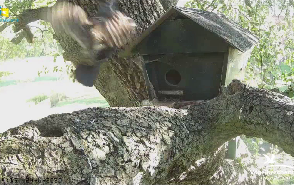 En net zoals vorig jaar lijken de kauwtjes na het broedseizoen weer interesse in de uilennestkast te krijgen.