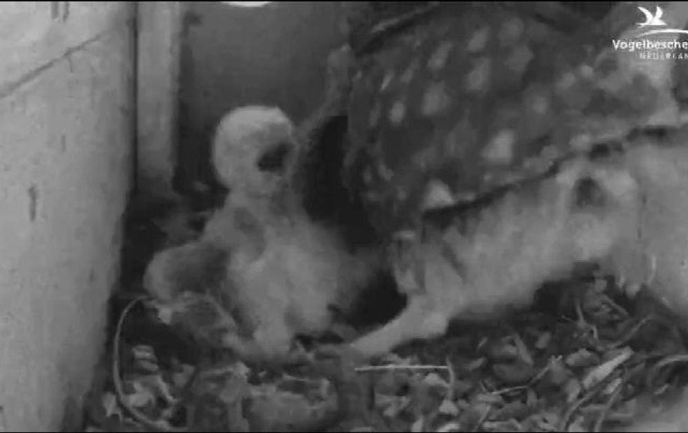 Vrouw steenuil probeert lastige bromvliegen te vangen. Een kuukje komt in de knel....... Locatie Dongen.