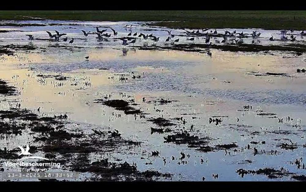 De avond daalt en wulpen zoeken de plas weer op, maar niet voor lang.
