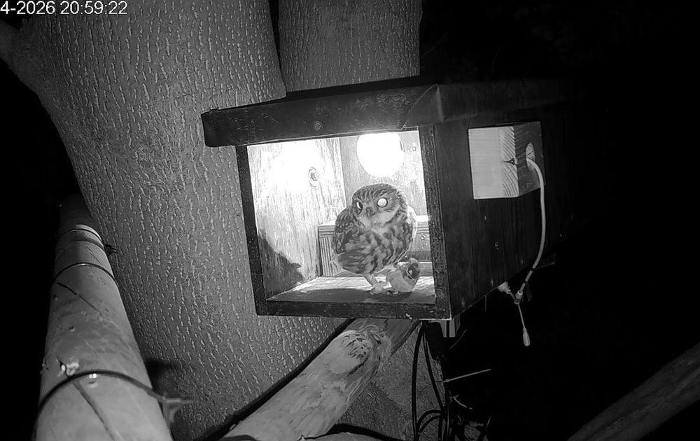 Vrouw is nog niet aan het broeden, deze avond is het druk voor de nestkast.