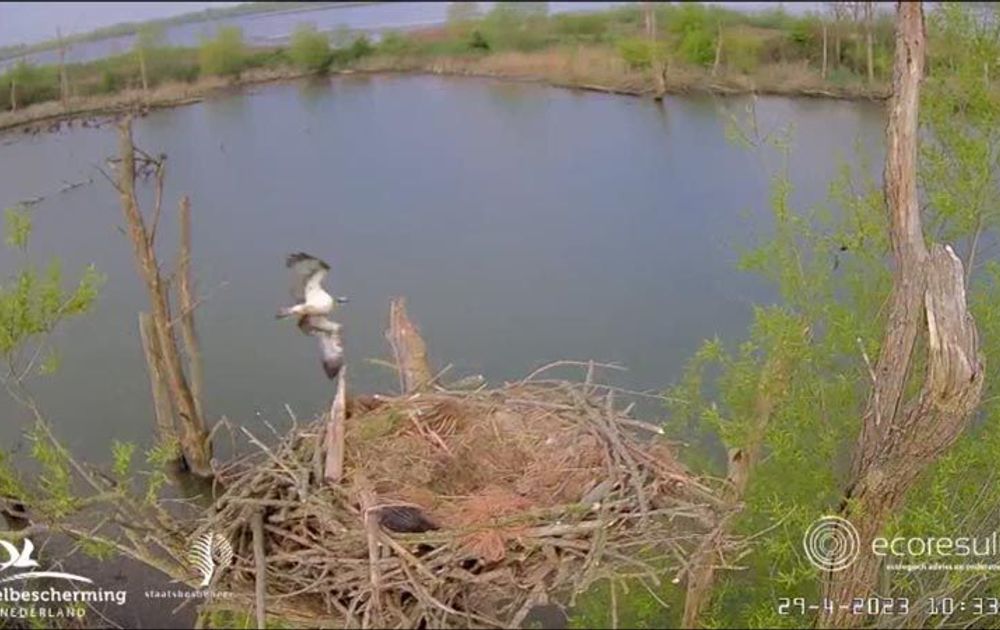 Vanmorgen werden weer even een koppel Nijlganzen van het nest verwijderd.