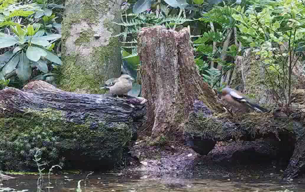 Een baltsende vink, maar ook een bonte specht, roodborst, jonge merel e.a