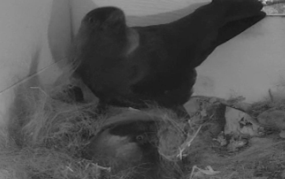 De kauwtjes zijn nog steeds bezig met het verzamelen van allerlei soorten nest materiaal, soms net iets teveel.