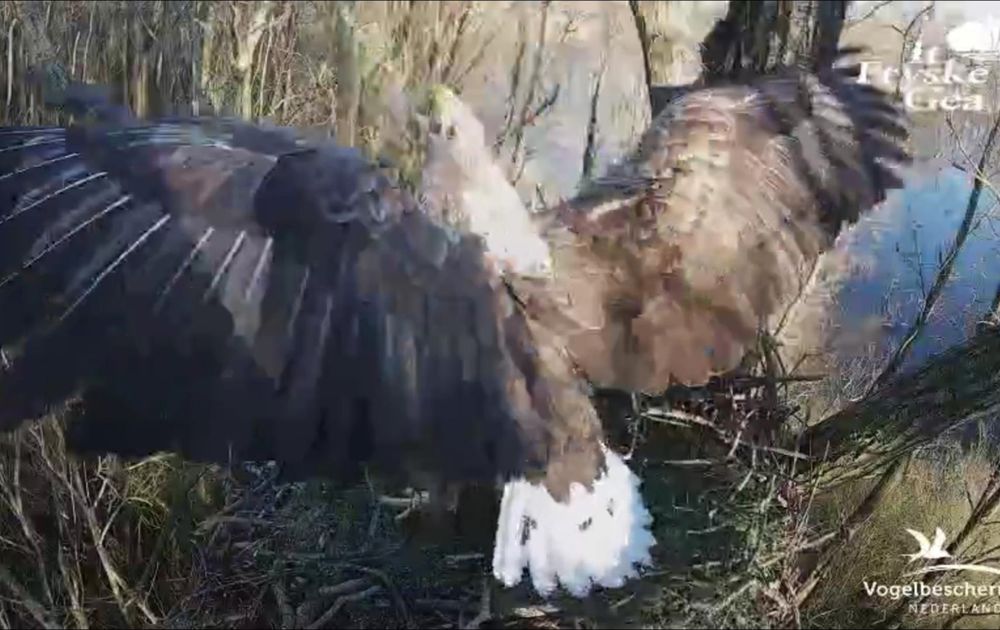 Met name de ochtenden zorgen voor actie. De zeearenden zijn zowel gisteren als vandaag even op het nest geweest. Gisteren zorgde dat voor een bekend conflict: de haviken gingen de strijd aan.