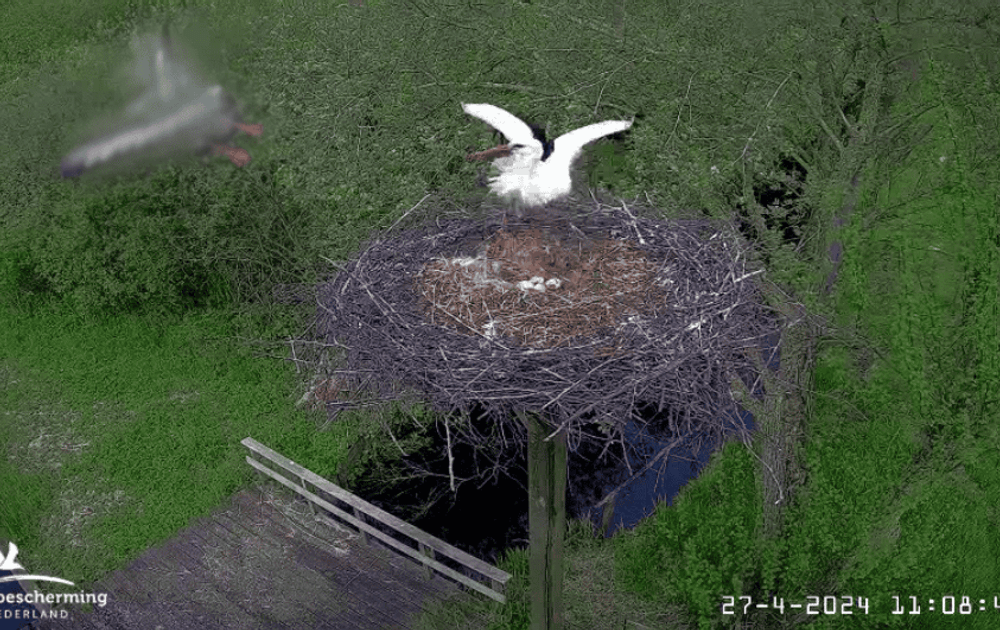 Het lijkt zo vredig, de hele dag een van de twee die aan het broeden is. Dit clipje laat zien hoe de situatie er in luttele twee seconden totaal zou kunnen veranderen.