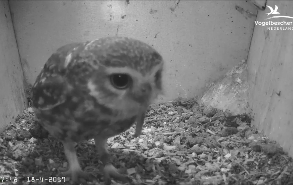 Ben zo terug. Dit bordje had vrouw steenuil niet opgehangen, toen ze de nestkast verliet.