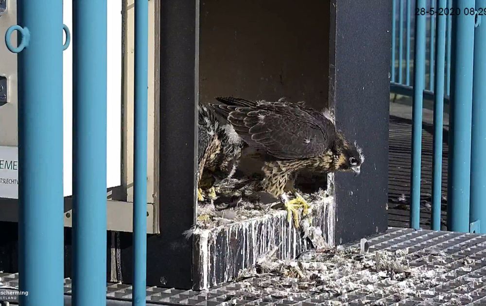 De jongen zijn bijna klaar om de ring op te gaan. De pluizen zijn haast weg, en er wordt druk geoefend met de vleugels. Man kan de prooi alleen maar afgeven