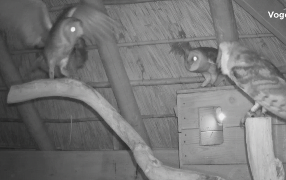 Nu de kerkuiljongen bijna volwassen zijn en niet meer stilzitten is het steeds lastiger om de prooioverdrachten vast te stellen. Soms is het gokken puur op het gehoor, maar soms heb je ook geluk en zie je nog een glimp van pa of ma kerkuil.