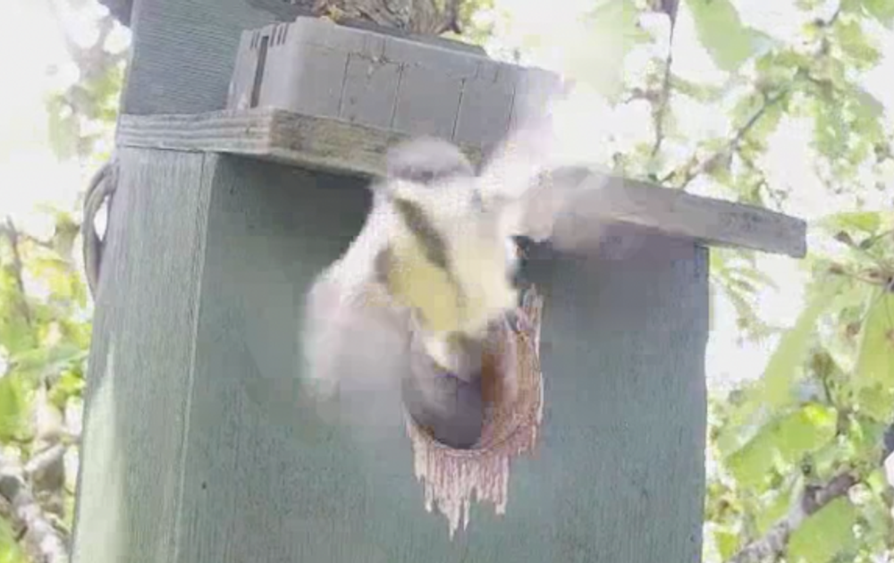 De grote dag is aangebroken! Vandaag vliegen alle 5 de jonge koolmeesjes uit. En dat gaat niet zomaar, ze twijfelen, ze bedenken zich, ze hebben de support van hun broertjes en zusjes en soms zelfs van hun ouders nodig om uit te vliegen! Wat een fantastisch gezicht!