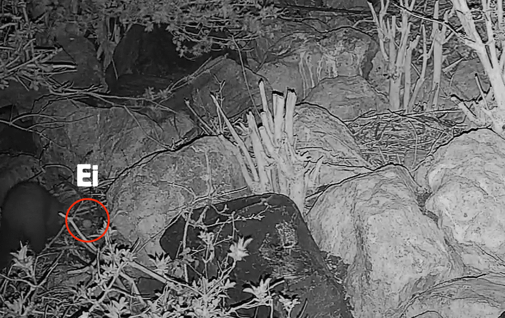 Vannacht heeft de boommarter na het stelen van een ei, zijn ei voor de camera begraven.