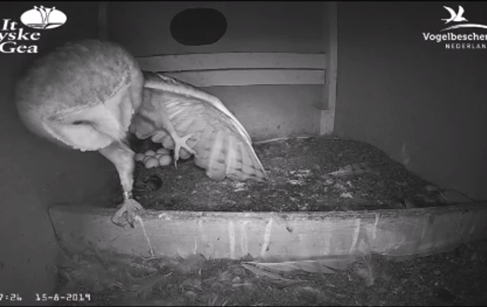 De broedtijd is vaak een beetje een saaie tijd. Veel meer dan paren, poetsen, eieren keren, eten en op de eieren zitten, af en toe een luchtje scheppen is er niet bij. Nog een dag of 11/12 en dan mag ook vrouw weer aan de bak. Met voornamelijk de kuikens warmhouden en voeren. Tot die tijd moeten we het zo'n beetje met dit soort beelden blijven doen