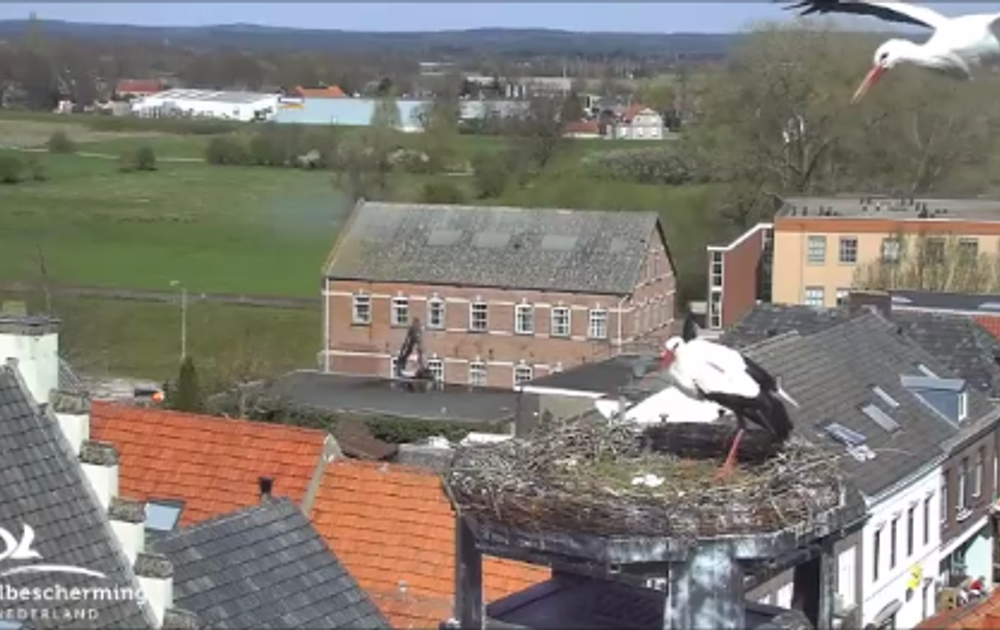 Twee vreemde ooievaars komen eens kijken of ze het nest van ons ooievaarspaar kunnen kraken. Omdat er veel wind staat en al die takken uit het nest niet echt handig zijn, gaat het verdedigen dit keer niet van een leien dakje. De ooievaars gooien in het filmpje ook hun kop naar achteren en zijn druk aan het klepperen. Dit doen ze om elkaar te begroeten of om mogelijke vijanden weg te jagen!