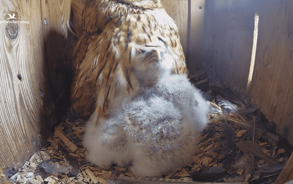 Het grootste kuiken heeft de ogen al best ver open en begint al lekker actief te worden.