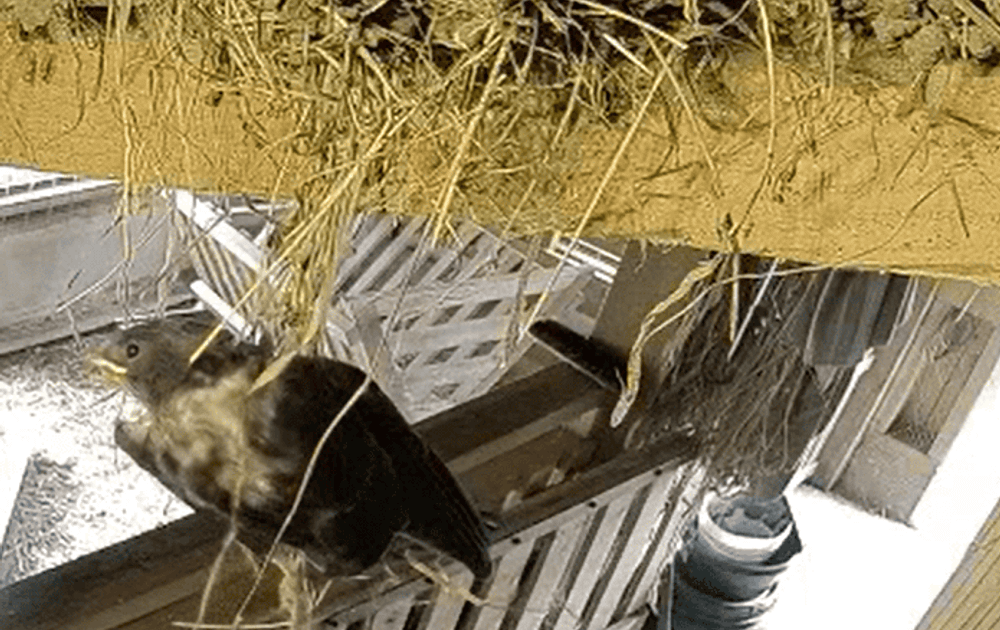 De 1e jonge zwaluw valt uit het nest, maar weet toch ook weer terug te komen