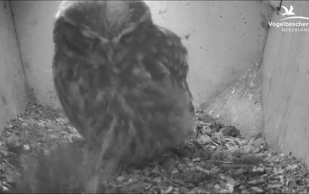De steenuilen hebben weer een rustdagje in de nestkast.