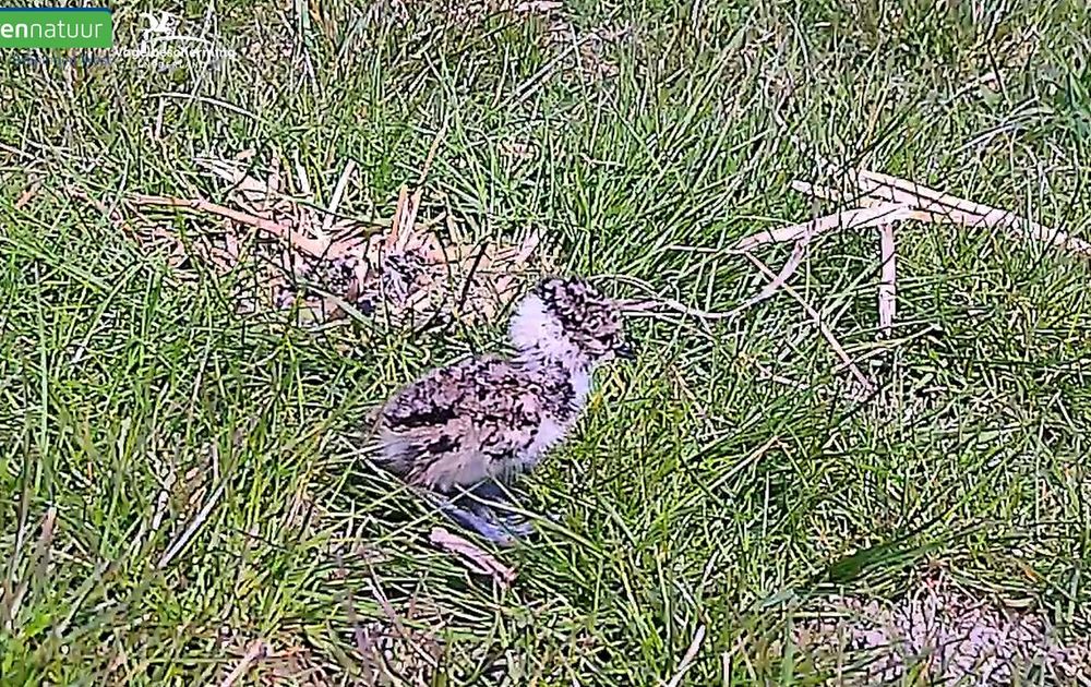 Het eerste kuukje of pulletje van de kieviten is al direct ondernemend.