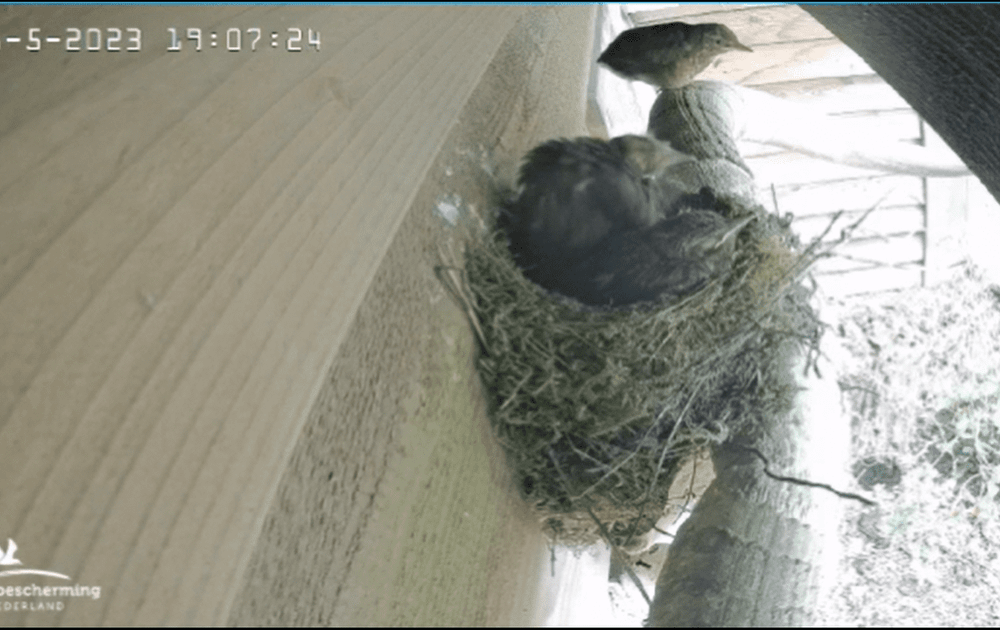 alweer de eerste die uitvliegt, het zal niet lang mee duren voor er een leeg nest zal zijn.