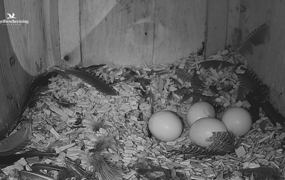 Vanavond om 20:36 waren de eerste 'riedeltjes' te horen. Riedeltjes zijn geluidjes die de kuikens nog in het ei maken zodra ze met hun snavel de luchtkamer in het ei aangeprikt hebben.