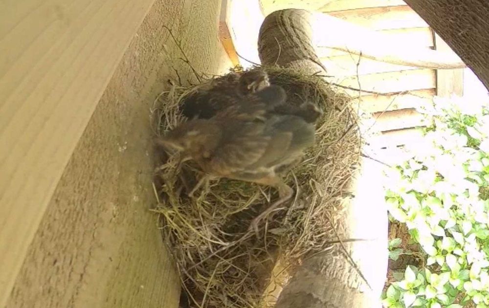 We zien de kuuks steeds beweeglijker worden. Het wachten was dan ook wanneer de eerste op de nestrand zou verschjinen.