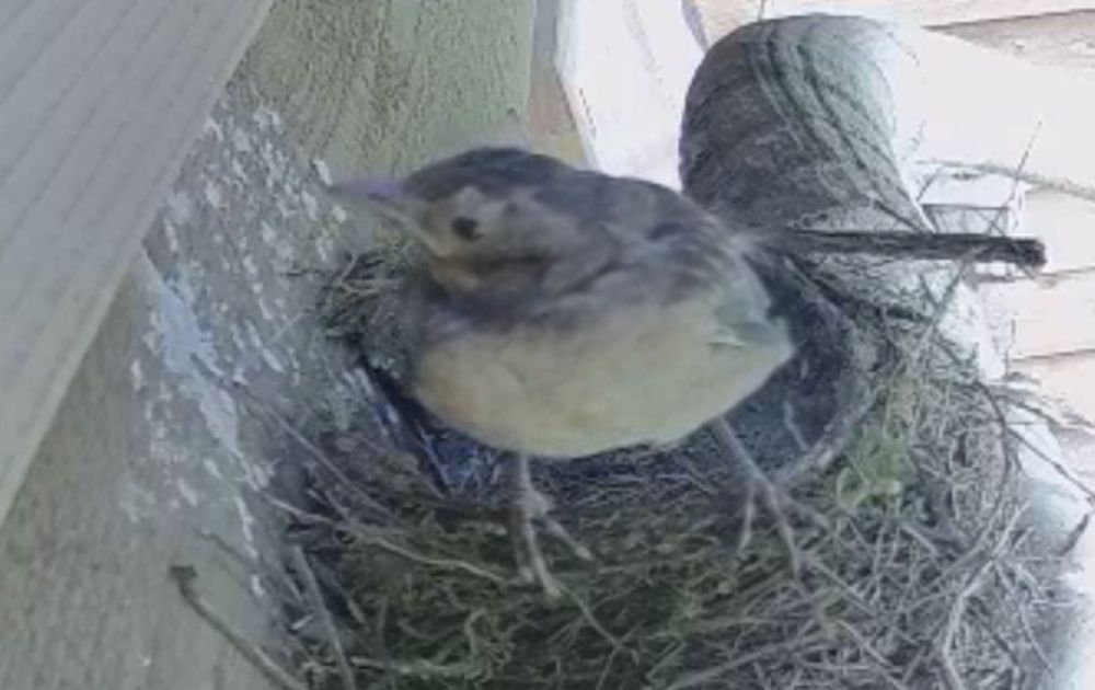 Het Merel kuiken was vandaag bijzonder actief, al wisselde het ook af met mooie zenmomenten.