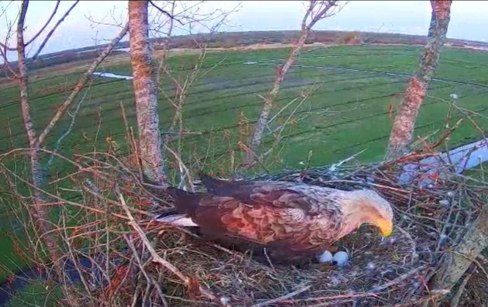 De eieren kunnen elk moment uitkomen, we genieten nog even van de zeearend vrouw die uiterst voorzichtig de eieren draait, tijdens een zeer fraaie zonsondergang.