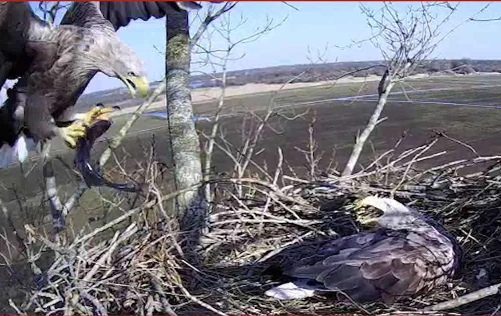Tussen 4 maart 2025, de dag dat het tweede ei gelegd is, en vandaag zijn er zeven prooien naar het nest gebracht, steeds door M. Die zijn nog niet nodig om jongen van te voeren dus waarom doet hij dat?