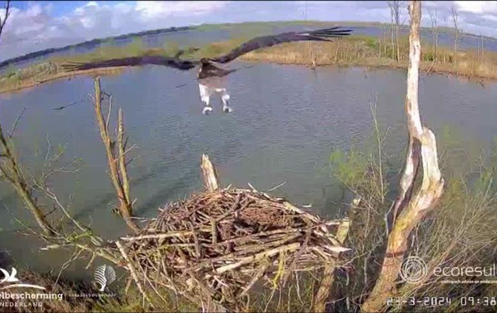 Na een lange reis uit zuidelijke streken landde vanmorgen rond 9:38 uur een Visarend op het nest.