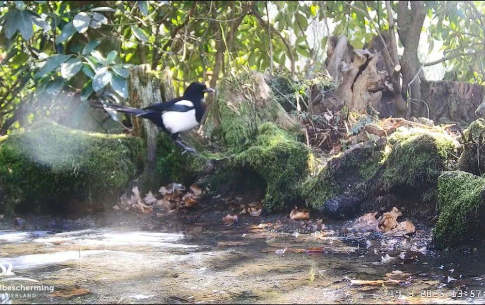 Op dit moment zijn diverse vogels weer matriaal aan het verzamelen om hun nest te bouwen. De boomklever is er erg druk mee bezig. En de ekster is voor het eerst bij de vijver geland.