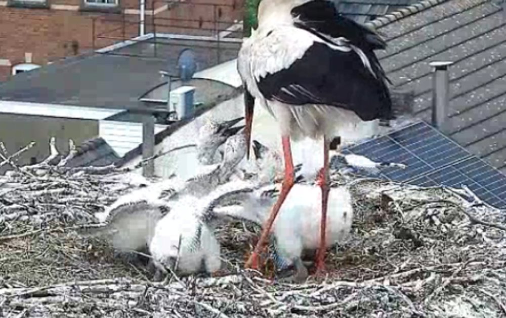 De beelden op de nestcam van de ooievaars lijken dit jaar saai. Maar dat komt omdat alles eigenlijk heel goed gaat. De kuuks krijgen voldoende te eten, geen verkeerde dingen waarin ze zich kunnen verslikken. Alles gaat zoals het moet gaan. Pas als je de beelden van een hele week ziet, zie je de veranderingen. De enorme groei, maar ook de steeds duidelijkere tekening die ze krijgen.