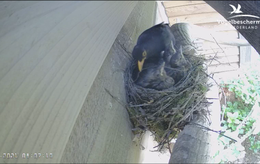 En weer komt man merel met een mot aanzetten. Die valt niet altijd in goede aarde. Nog even wat toiletteren en dan gaat man merel ook nog eens bijna 'de mist in'.