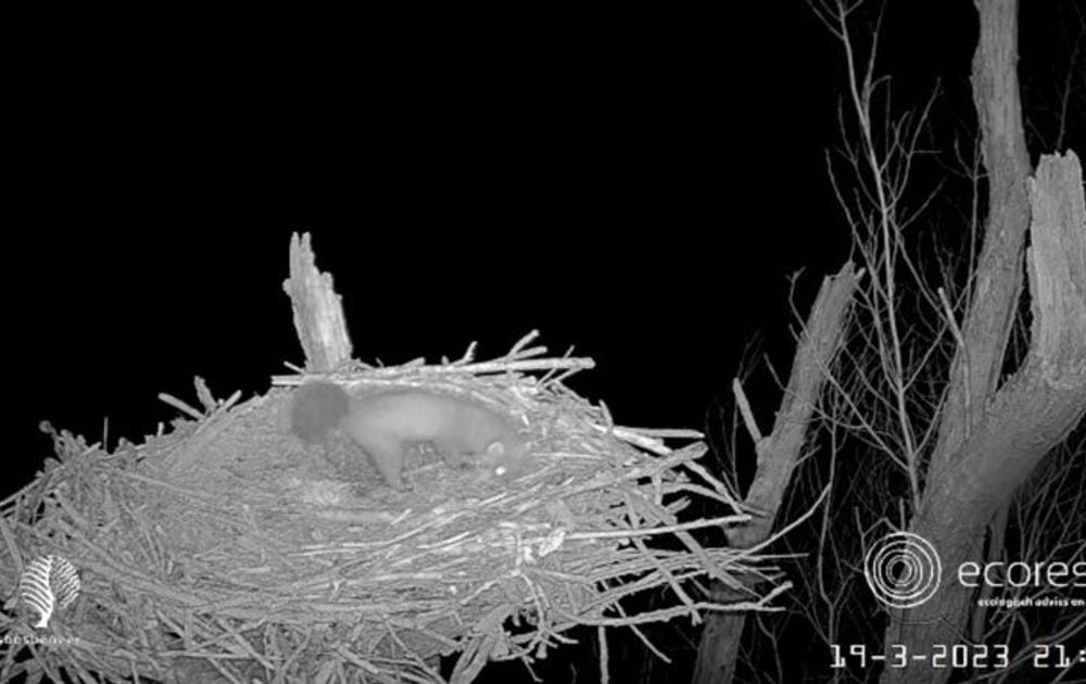 Rond 21:44 uur verschijnt daar plotseling, die wij als vogelliefhebbers liever niet zien, De Marter!