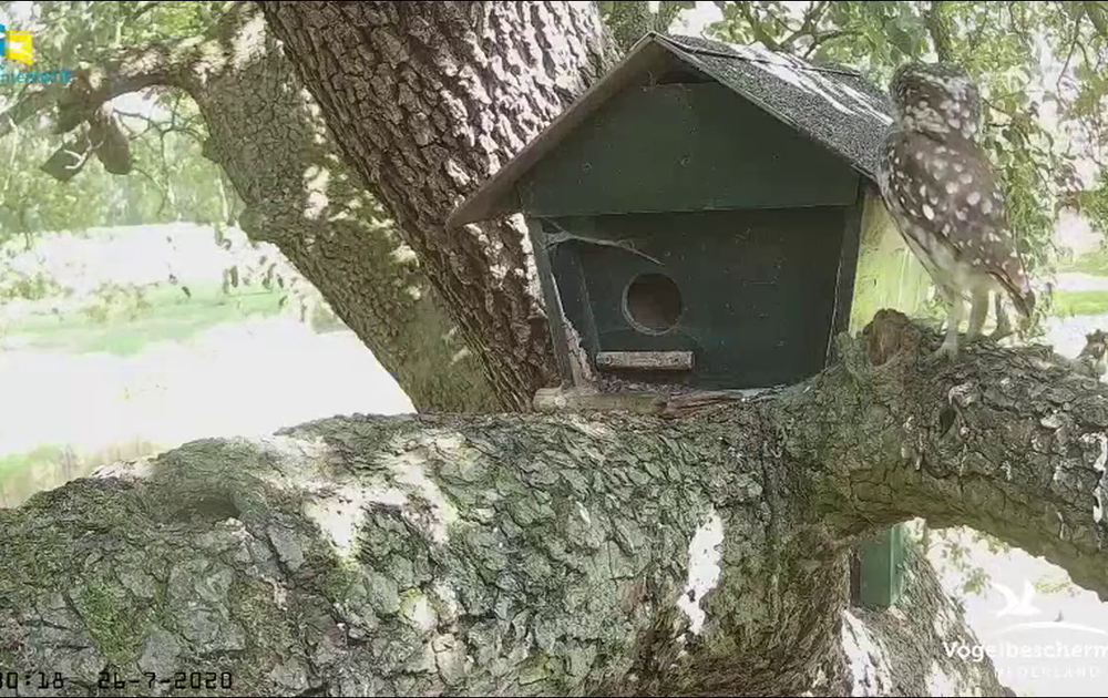 Man steenuil gaat na een week weer eens de kast in. Hij moet door het spinnenweb voor de binneningang. Meer webben belemmeren het zicht. Hij blijft 13 minuten binnen, en verliest het strootje aan zijn wenkbrauw bij het weggaan.