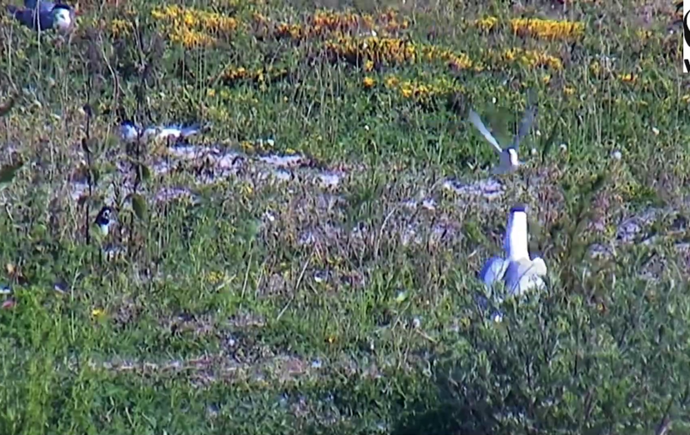 De camera laat verschillende plekken zien. De bedoeling naast drukke plekken op de grens van land en water in ieder geval drie broedkolonies in beeld te brengen: