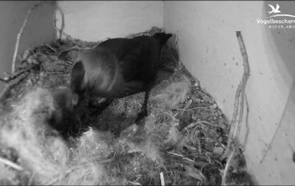 Als het kuiken in het nest ligt, is ie niet te zien, maar als er eten aankomt...