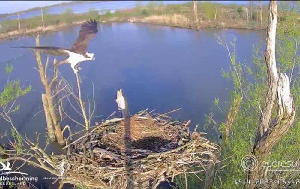 Zolang er nog geen V is, werkt Man stug door aan het nest